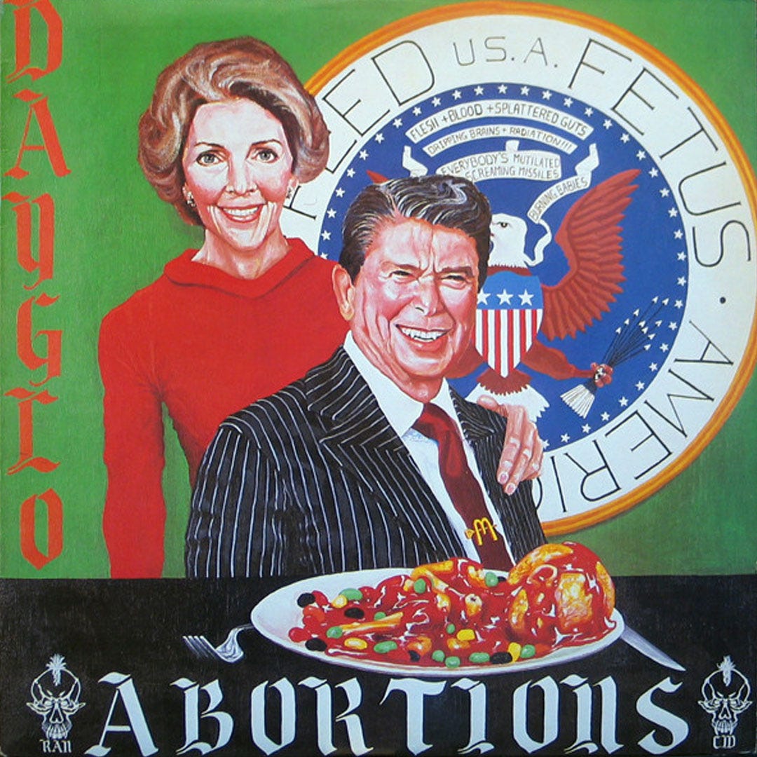 Dayglo Abortions “Ronald McRaygun” from 1986’s “Feed Us A Fetus”, Fringe Product.